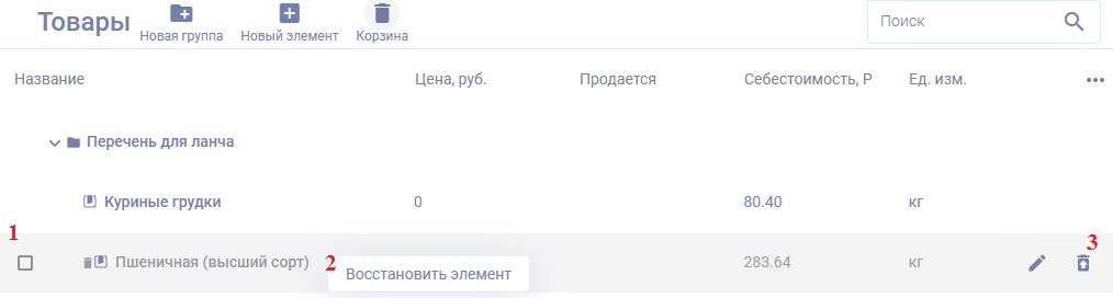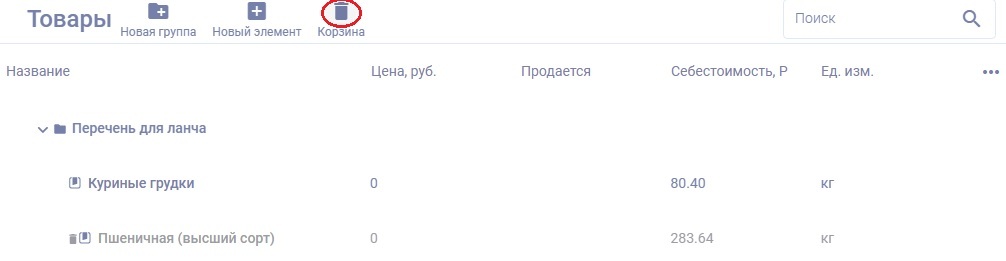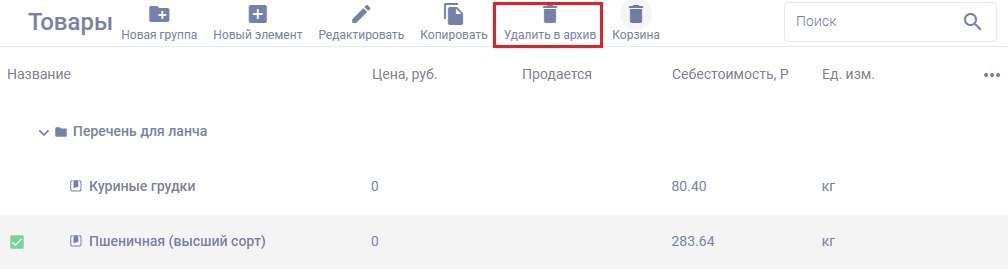 Если товары, блюда или контрагенты стали неактуальными, то с помощью переноса в архив они могут быть скрыты, но при этом всё равно останутся в системе.