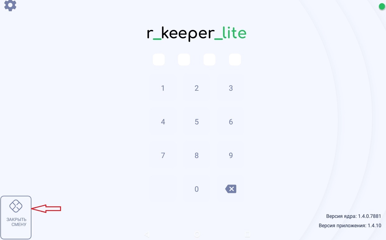 3. Нажать на кнопку "Закрыть смену" в левом нижнем углу.