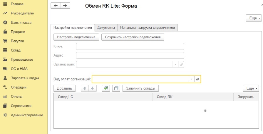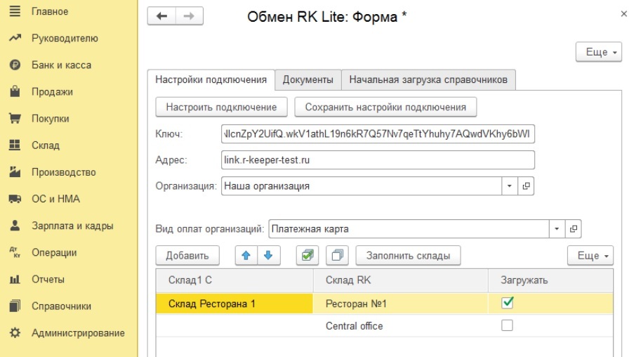 настройке интеграции с 1С, приведенные в отдельной инструкции.