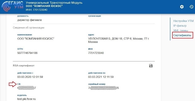 Идентификатор в системе ЕГАИС – идентификационный номер в документе при регистрации. Также его можно посмотреть в RSA-сертификате в разделе "Сертификаты":