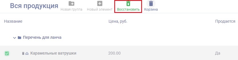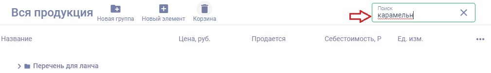 Если вы не можете найти товар (или блюдо) в справочнике всех элементов "Вся продукция" (меню "Продукция" → раздел "Вся продукция"), есть вероятность, что вы сами или кто-то из ваших сотрудников перенес этот товар в архив или ошибочно удалил.