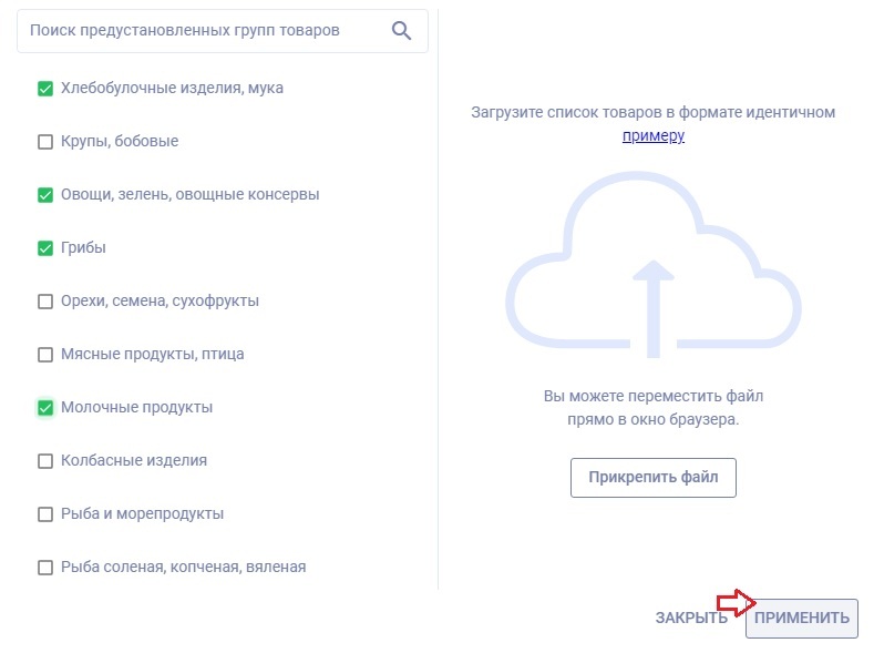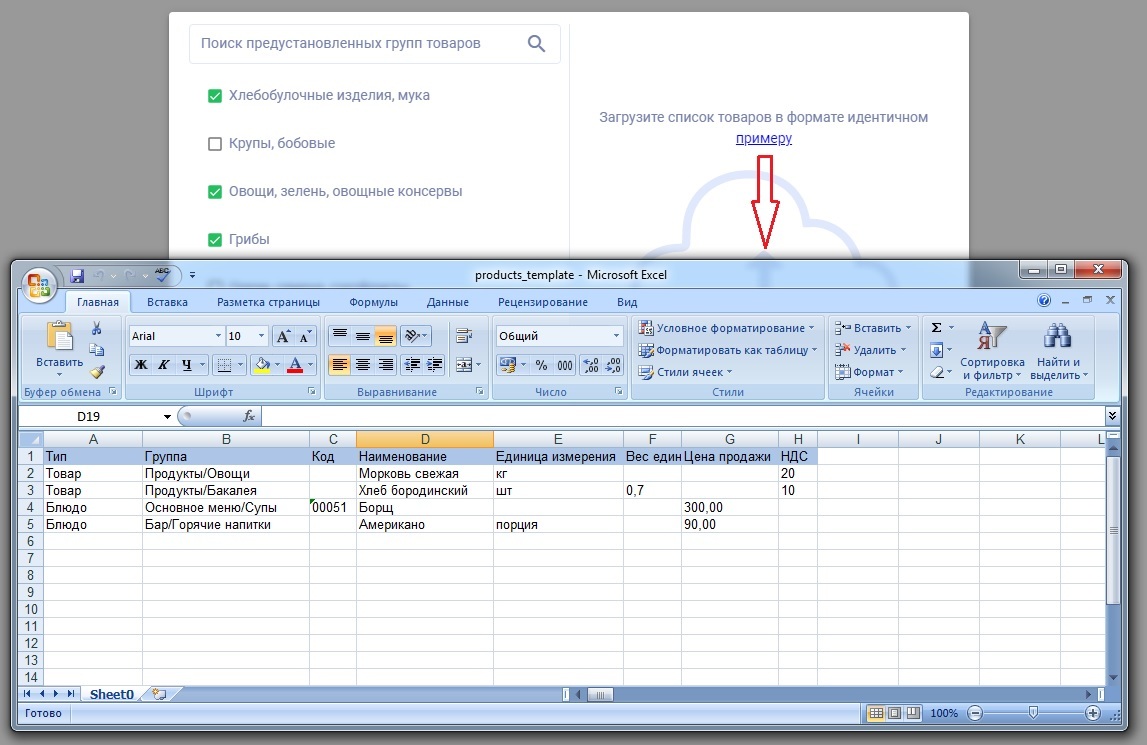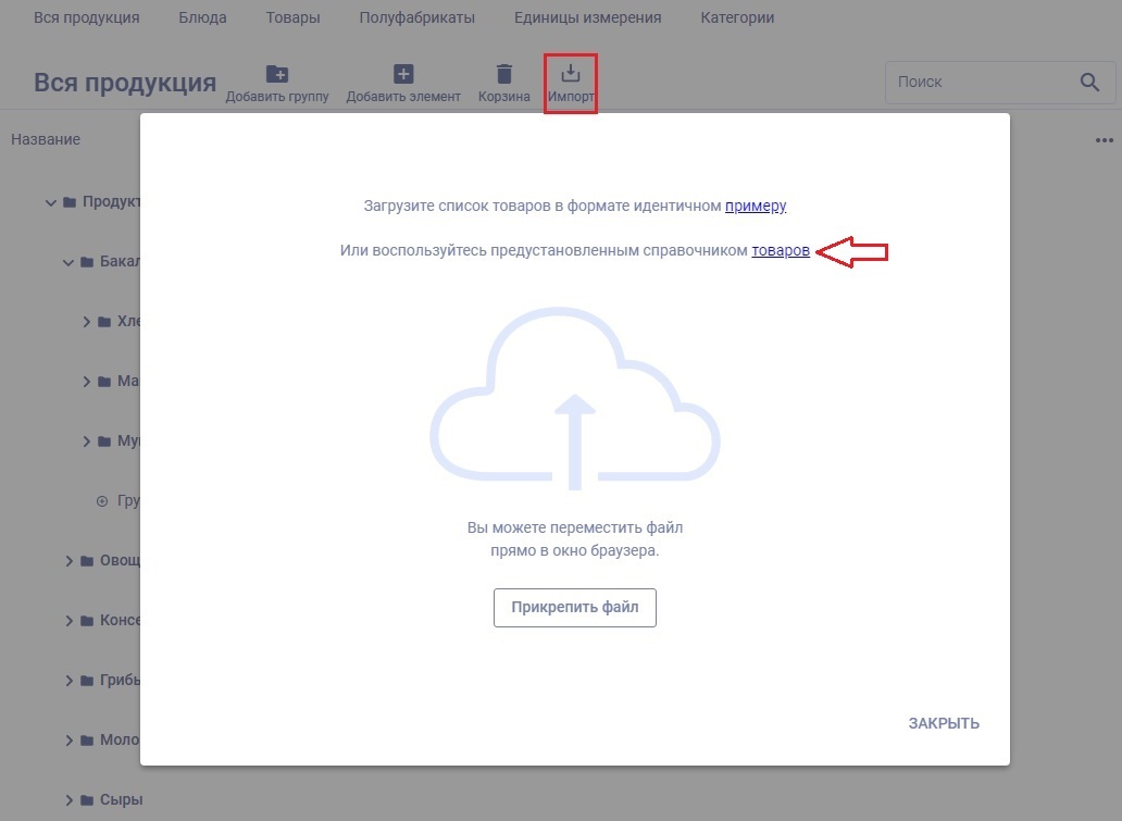 Тип - обязательное, одно из значений: товар, блюдо, полуфабрикат.