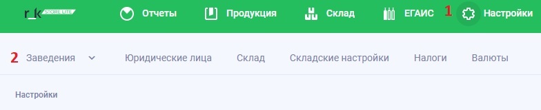 1. Перейдите в меню "Настройки" → раздел "Заведения".