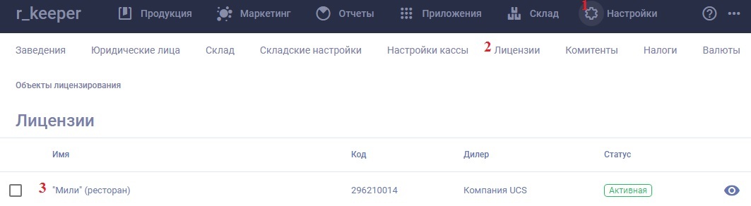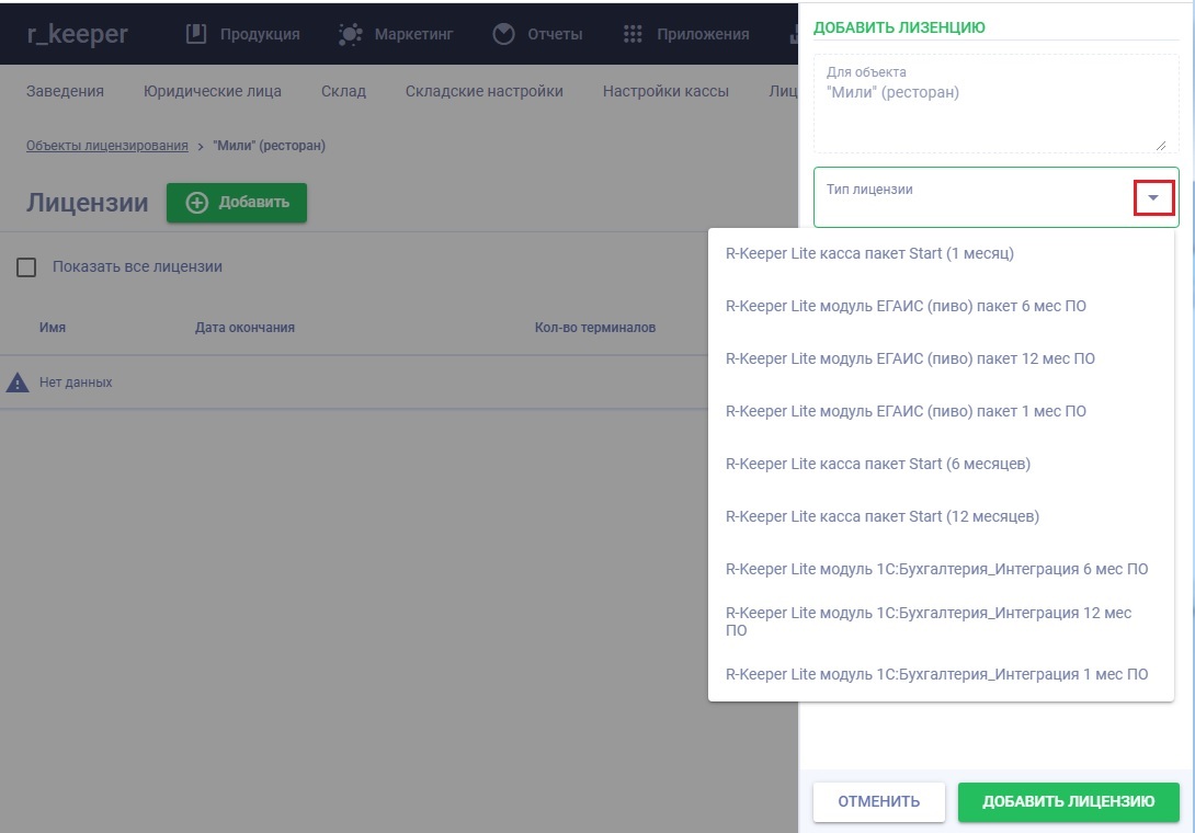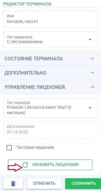 2. При заказе мастер-лицензии для заведения с указанием необходимого количества терминалов в справочнике "Лицензии" в бэк-офисе r_keeper Lite.