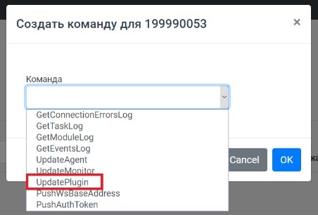 5. Найдите своего агента и выполните сервисную команду UpdatePlugin: