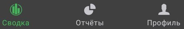 Из области меню Вы можете осуществить переход на экраны "Сводка", "Отчеты" и "Профиль". Активный экран подсвечивается в меню зеленым цветом.