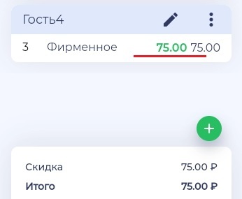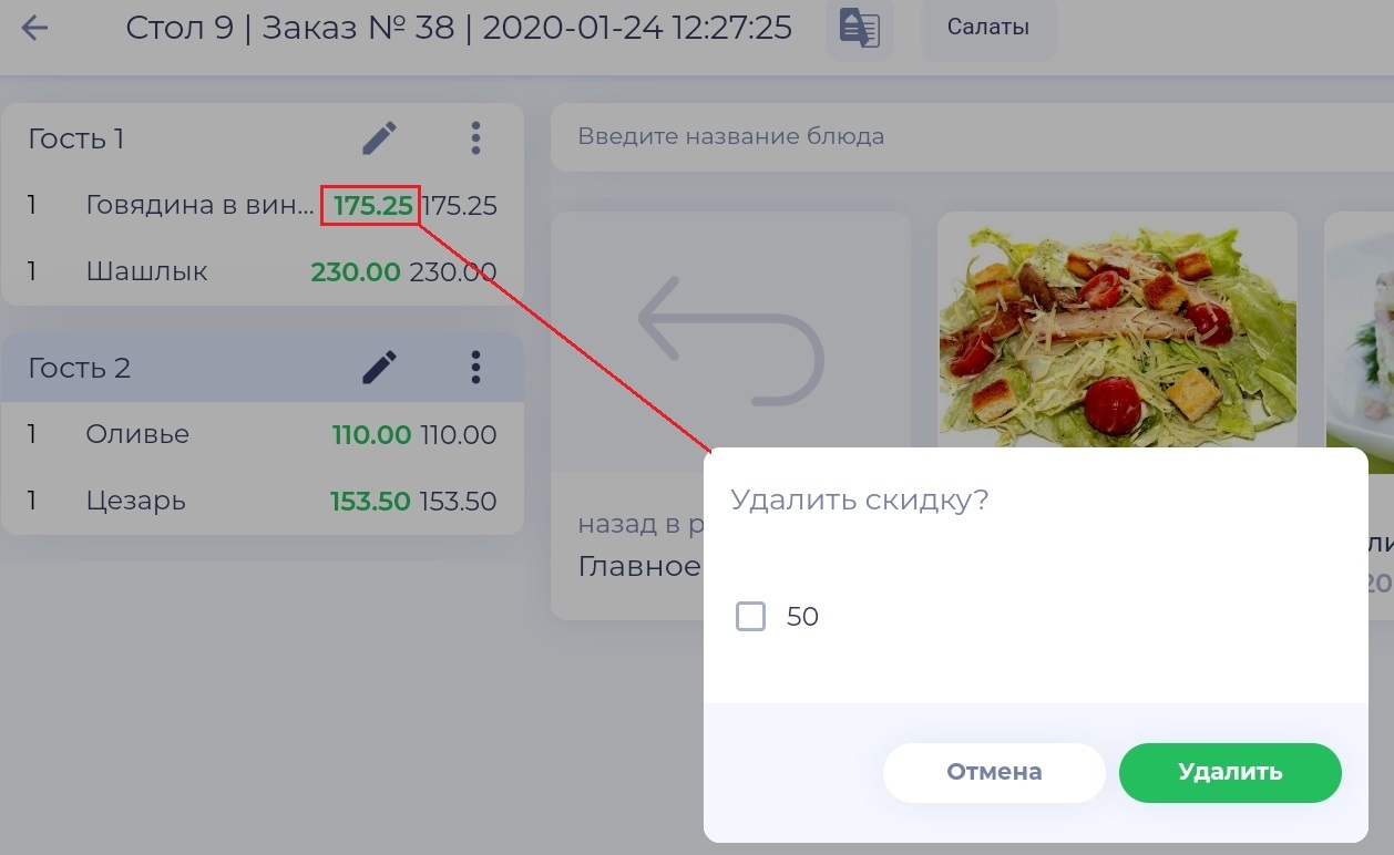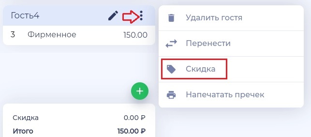 2. Нажмите на кнопку скидки в строке для выбранного блюда.