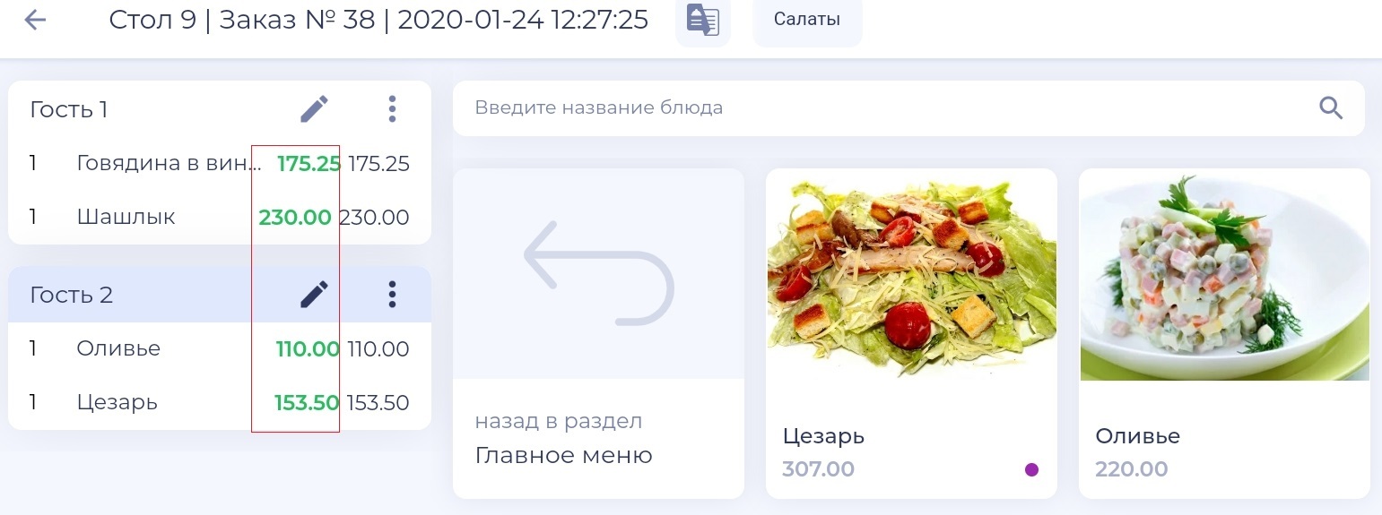 Для того чтобы назначить скидку/наценку на блюдо: