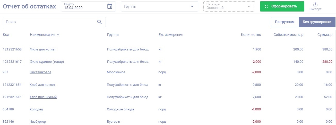 и "Почему в отчете об остатках товар отображается с минусом?". Себестоимость - себестоимость единицы товара на складе на дату отчета.