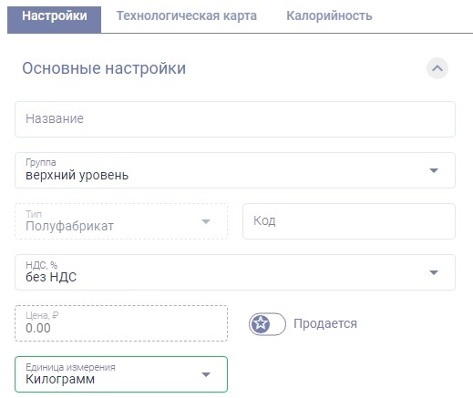Тип - поле не редактируется. В нем отображается значение создаваемого элемента, в данном случае "Полуфабрикат".