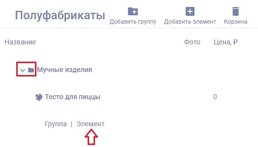Группа - родительская группа для элемента, выбирается из списка (по умолчанию значение той группы, в рамках которой создавался элемент или "верхний уровень", если группа не была выбрана).