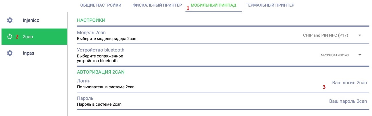 3. Необходимо выполнить/проверить следующие настройки на вкладке "Фискальный принтер":
