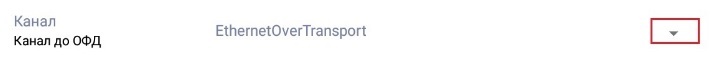 Выберите для параметра "Канал до ОФД" (канал для получения, обработки, и перенаправления фискальной информации в налоговую инспекцию) значение "EthernetOverTransport" (для использования Интернет-устройства, к которому подключен фискальный принтер).