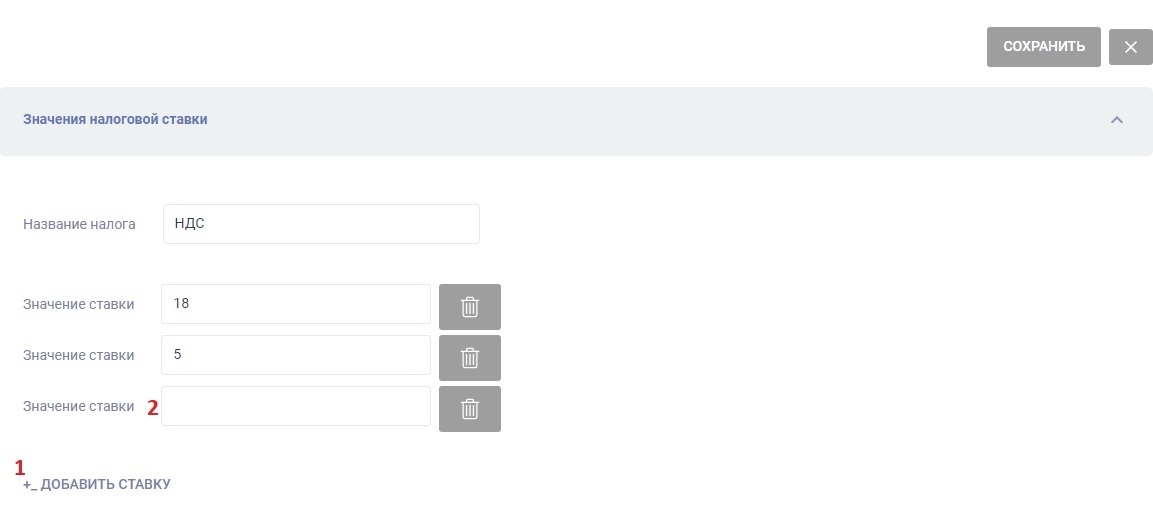 В РФ это НДС, для других стран список налогов отличается. Поэтому в системе есть возможность добавлять и удалять налоги и их ставки.