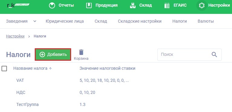 Справочник содержит список налогов, которые применяются к блюдам, товарам в вашем заведении.
